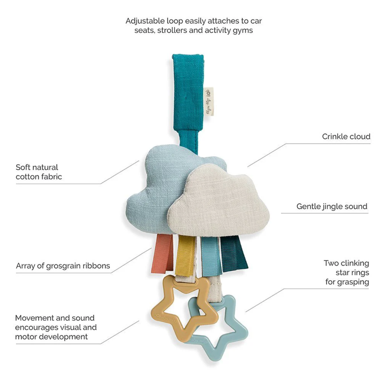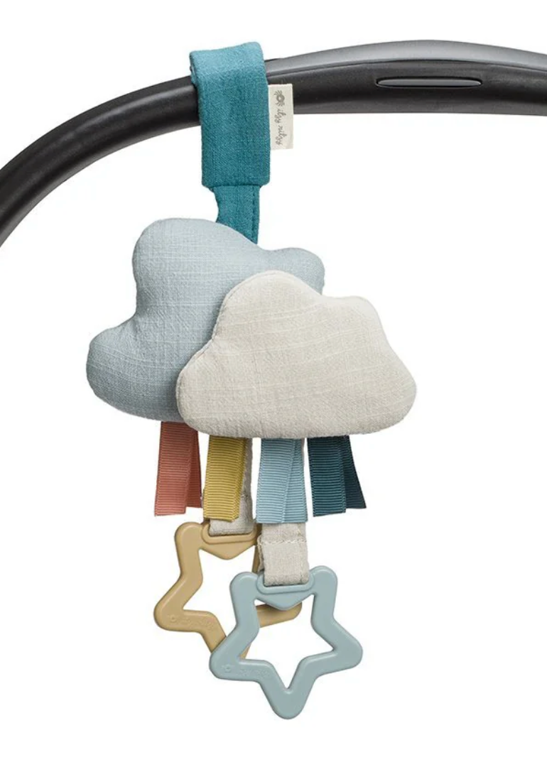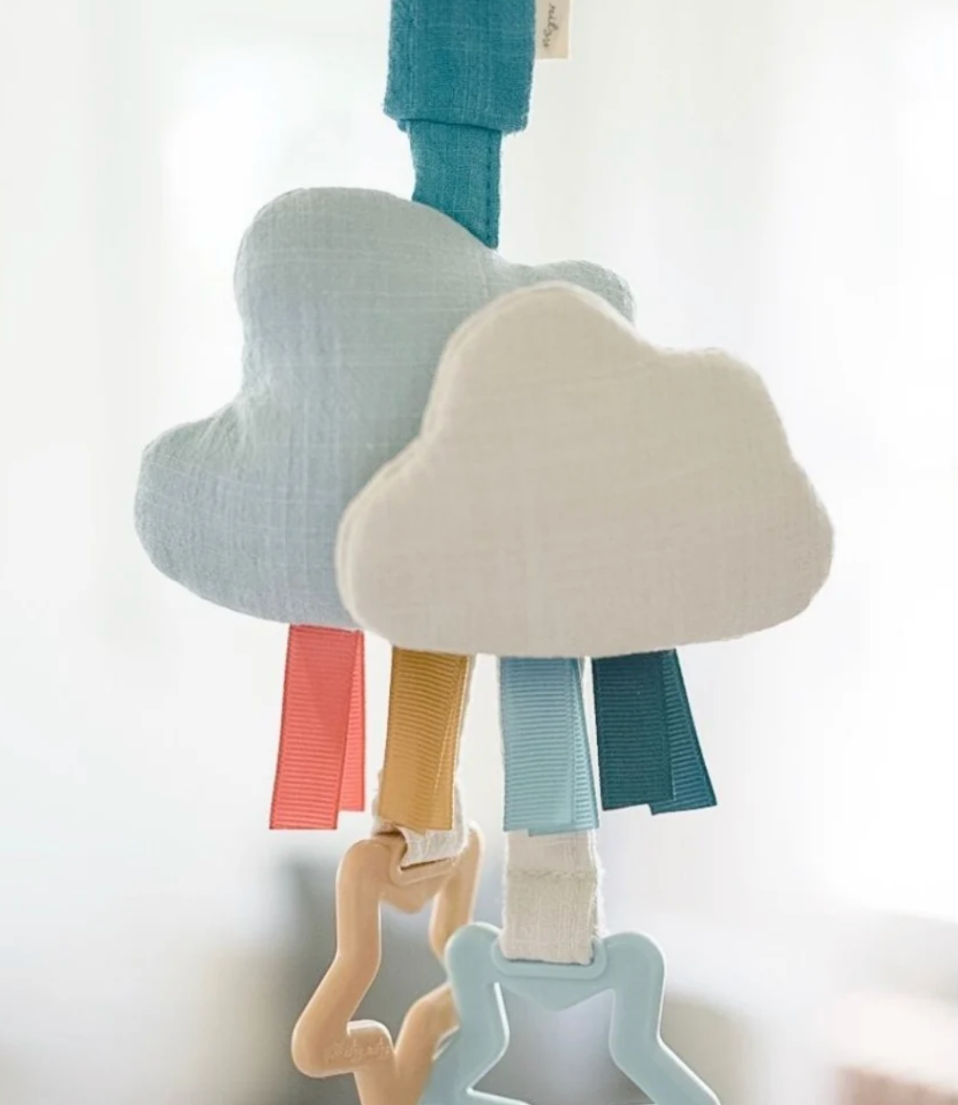 Let’s Explore! Our Ritzy Jingle™ from our Bitzy Bespoke collection is the playful pick-me-up your little one can’t resist! Design with sensory play in mind, this baby travel toy is crafted with soft natural cotton and features a jingle ball inside to envelop baby with its gentle sound. Dangling rings and ribbons create different textures for your babe to grasp onto during your next adventure. Whether it's a road trip or a walk through the neighborhood, easily fasten the Ritzy Jingle onto a car seat or stroller for on-the-go fun.