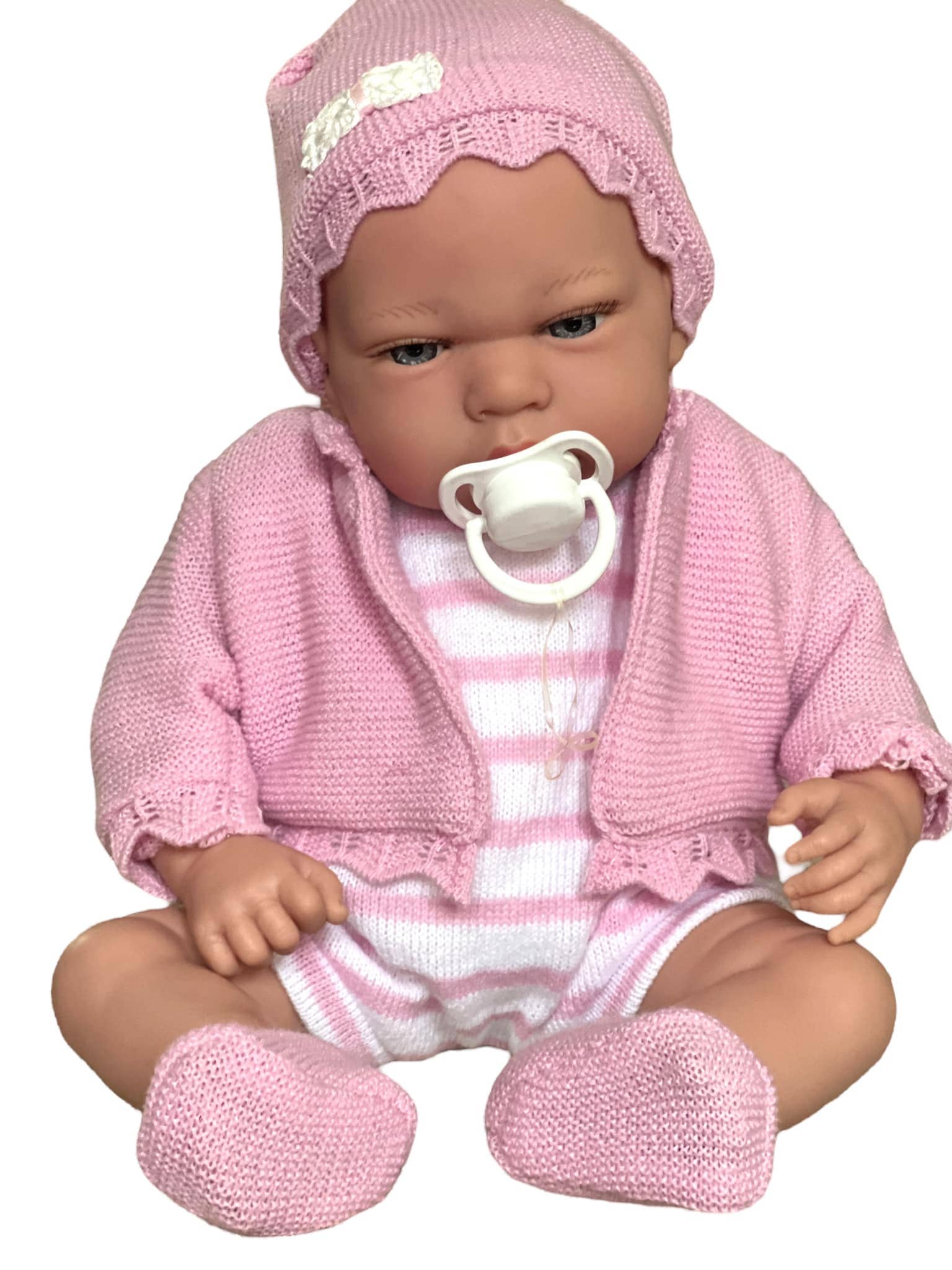 Baby Doll Knit Set. Includes all the Pieces Shown EXCEPT Baby doll. Fits Baby Dolls 15-16 Inches.