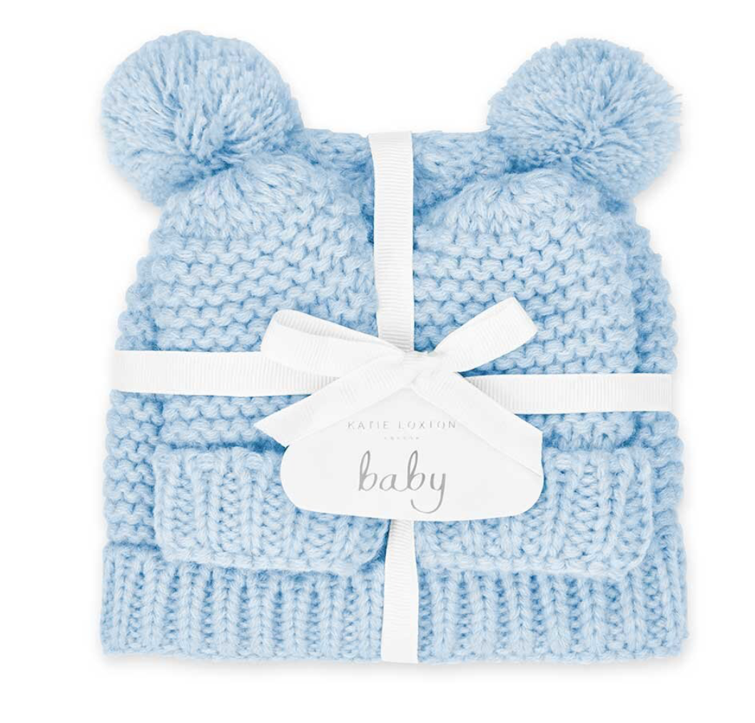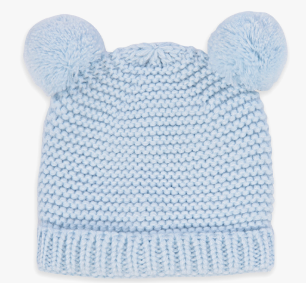 In a lovely blue hue, this set is made from a soft and cozy knitted fabric with a beautifully soft cotton lining. Finished with super cute bobble detailing, this matching set is sure to keep baby bundled in joy.