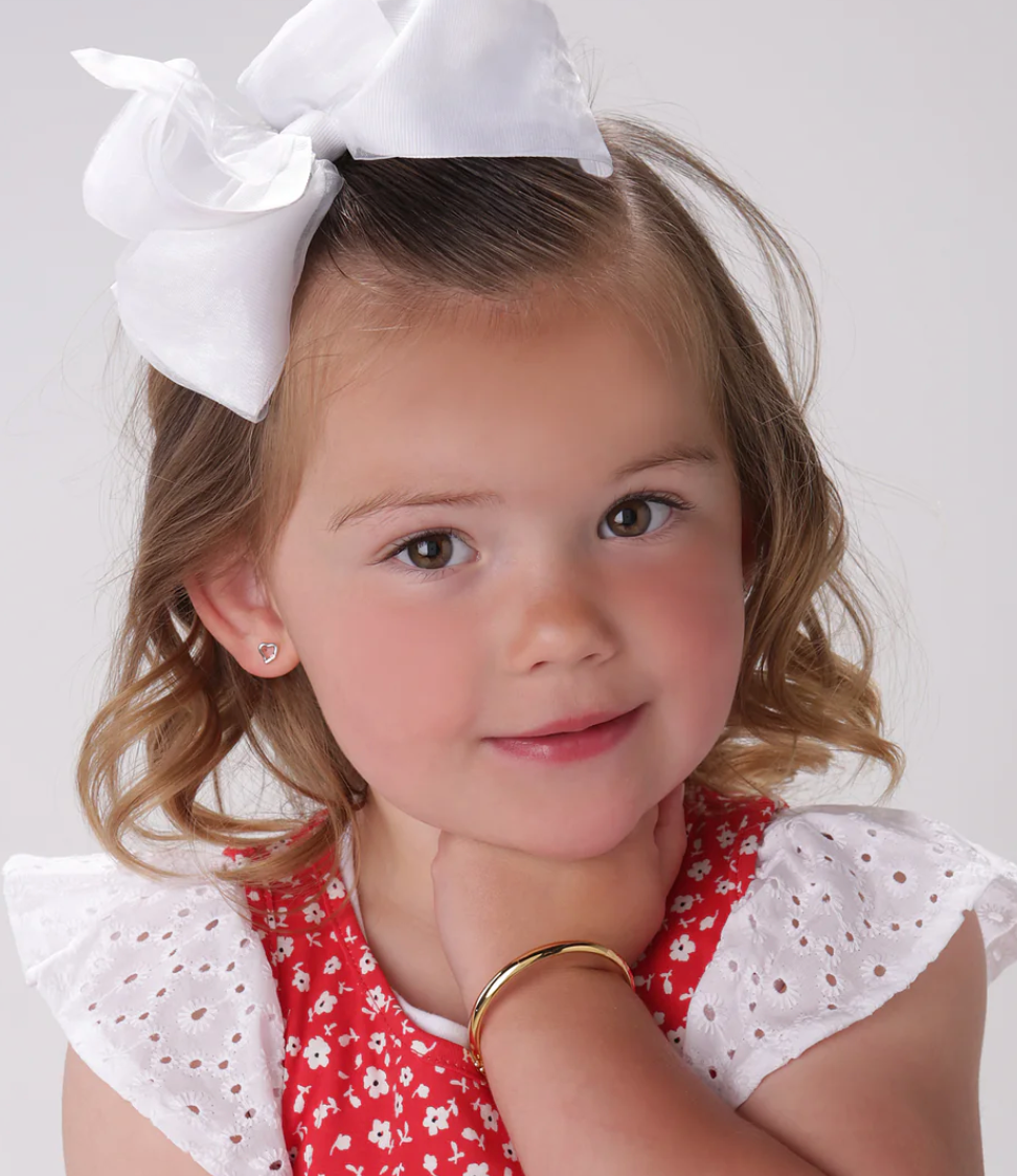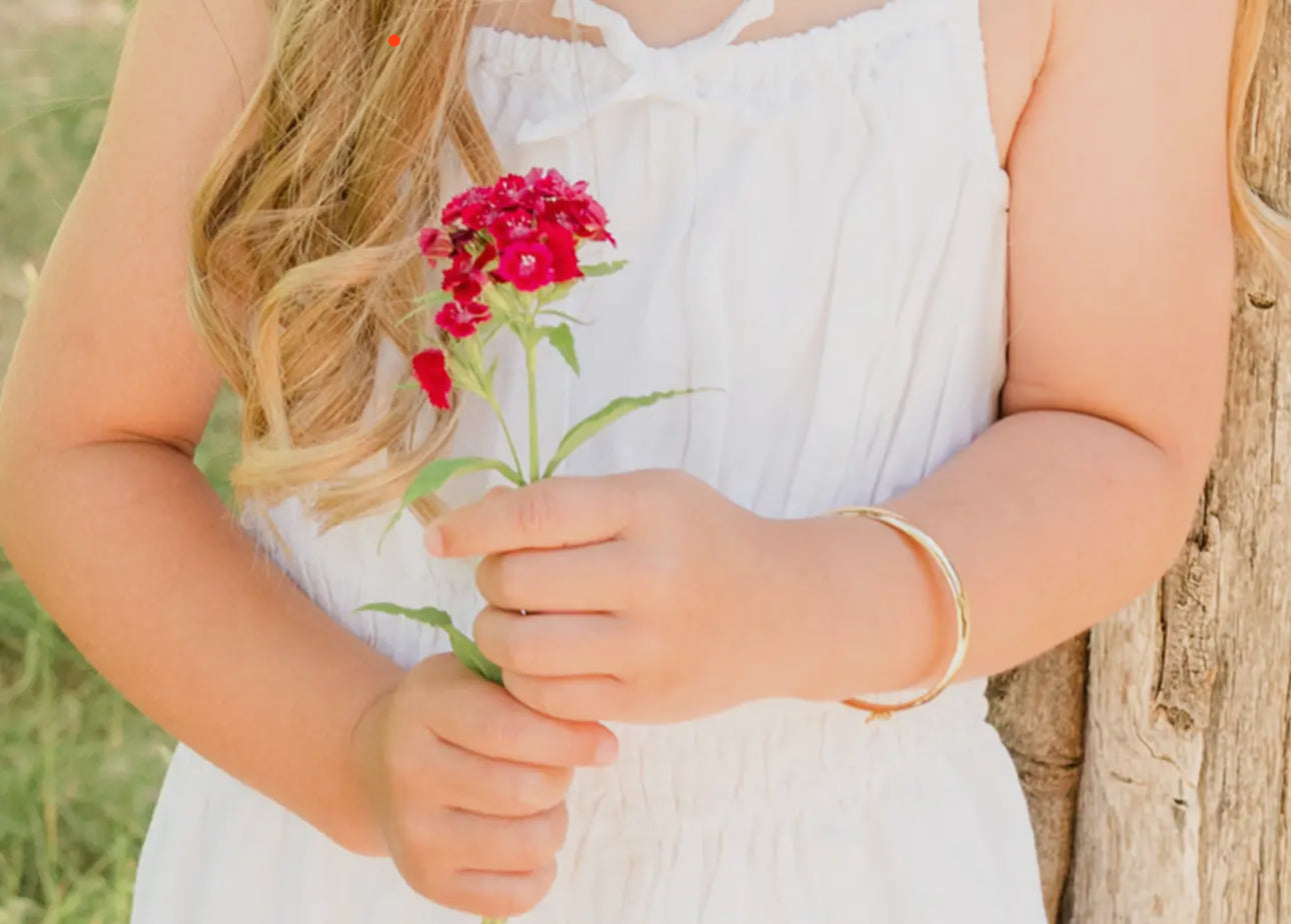 Precious classic 14K gold-plated bangle bracelet with durable latch. This bangle is made in sterling silver and plated with 14K gold plating. Perfect baby gift, girls, teens and women. Perfect keepsake she will cherish forever. This bracelet comes in a beautiful gift box ready for gifting.
