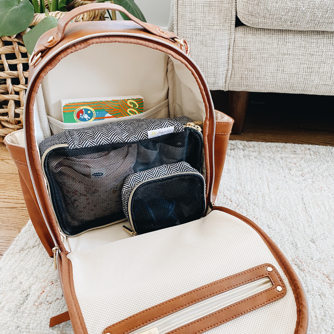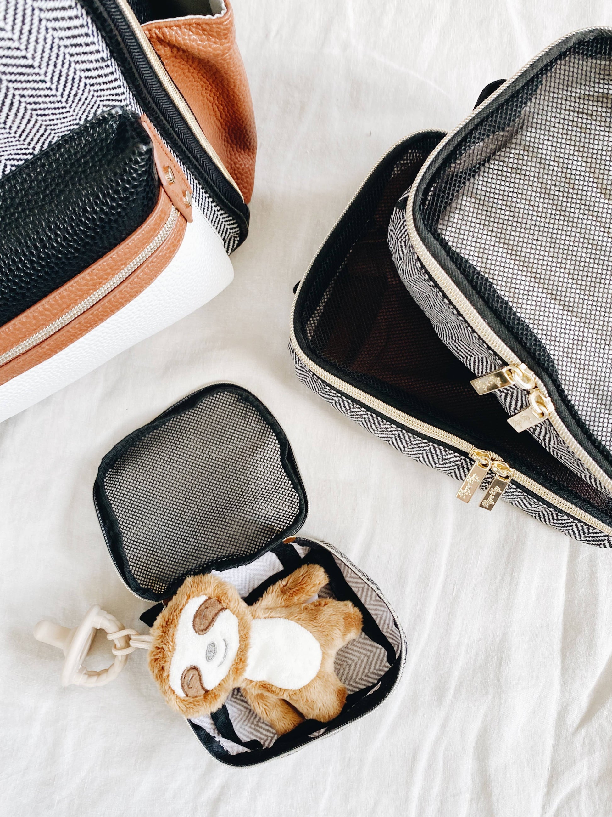 Staying organized has never been easier or more stylish! Our set of three packing cubes can be used together or individually, making them the ultimate diaper bag storage organizers for traveling and life on the go! Has a mesh panel for viewing contents, easy carry handle, and coordinates with favorite Itzy Ritzy Diaper Bags - like the Coffee & Cream Boss Backpack™! Preorders for this product will ship separately from any other orders on Faire. Additional shipping fees may apply. Ship dates are estimated & product could ship sooner than listed back in stock date.