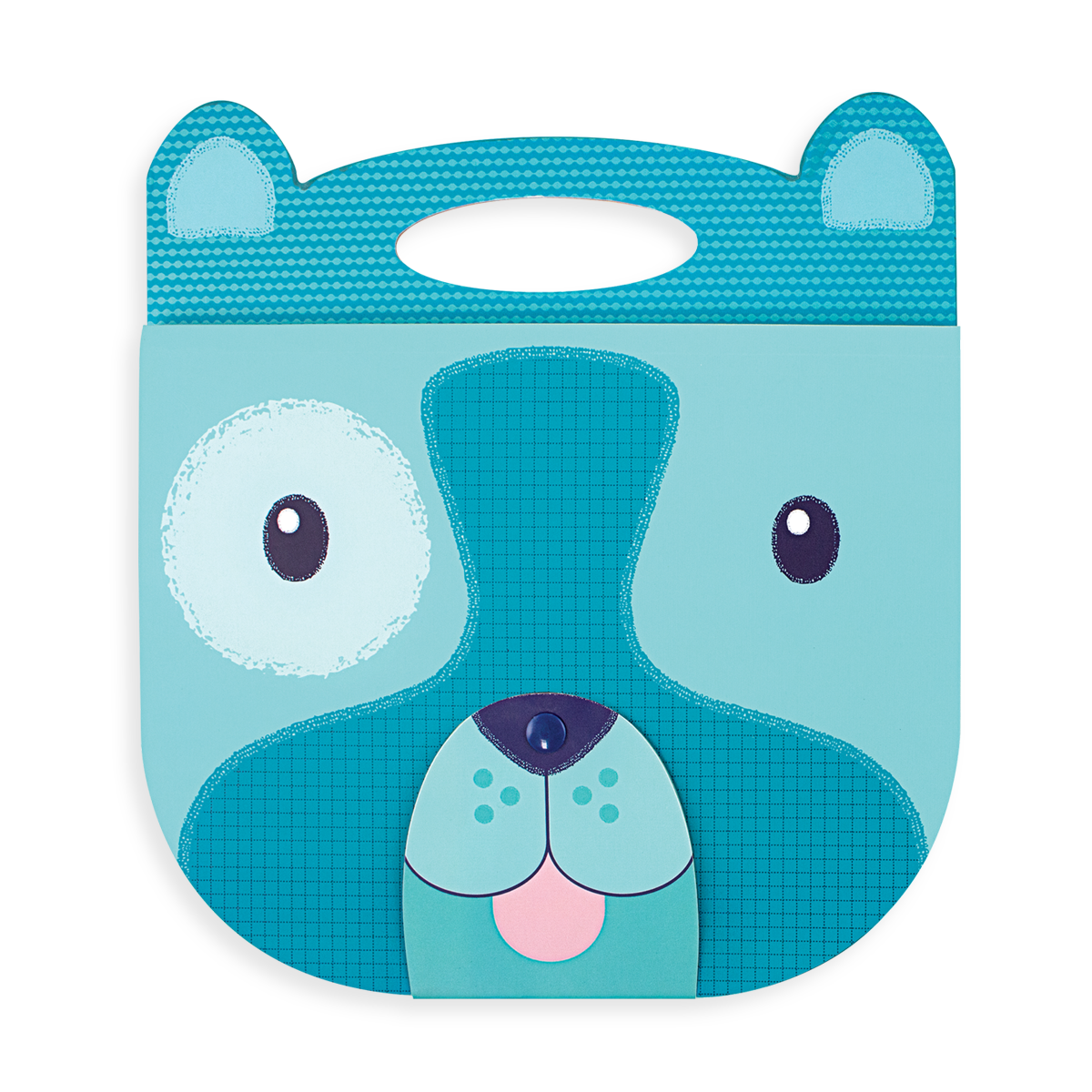 Bow Wow! This puppy dog sketchbook will let you create on the go! Let the Dog Carry Along Sketchbook to be your new friend in your drawing and coloring adventure. With carry handles perfect for little hands, and cute clasp noses, you can create the next masterpiece or doodle wherever you are and keep your artwork safe too!