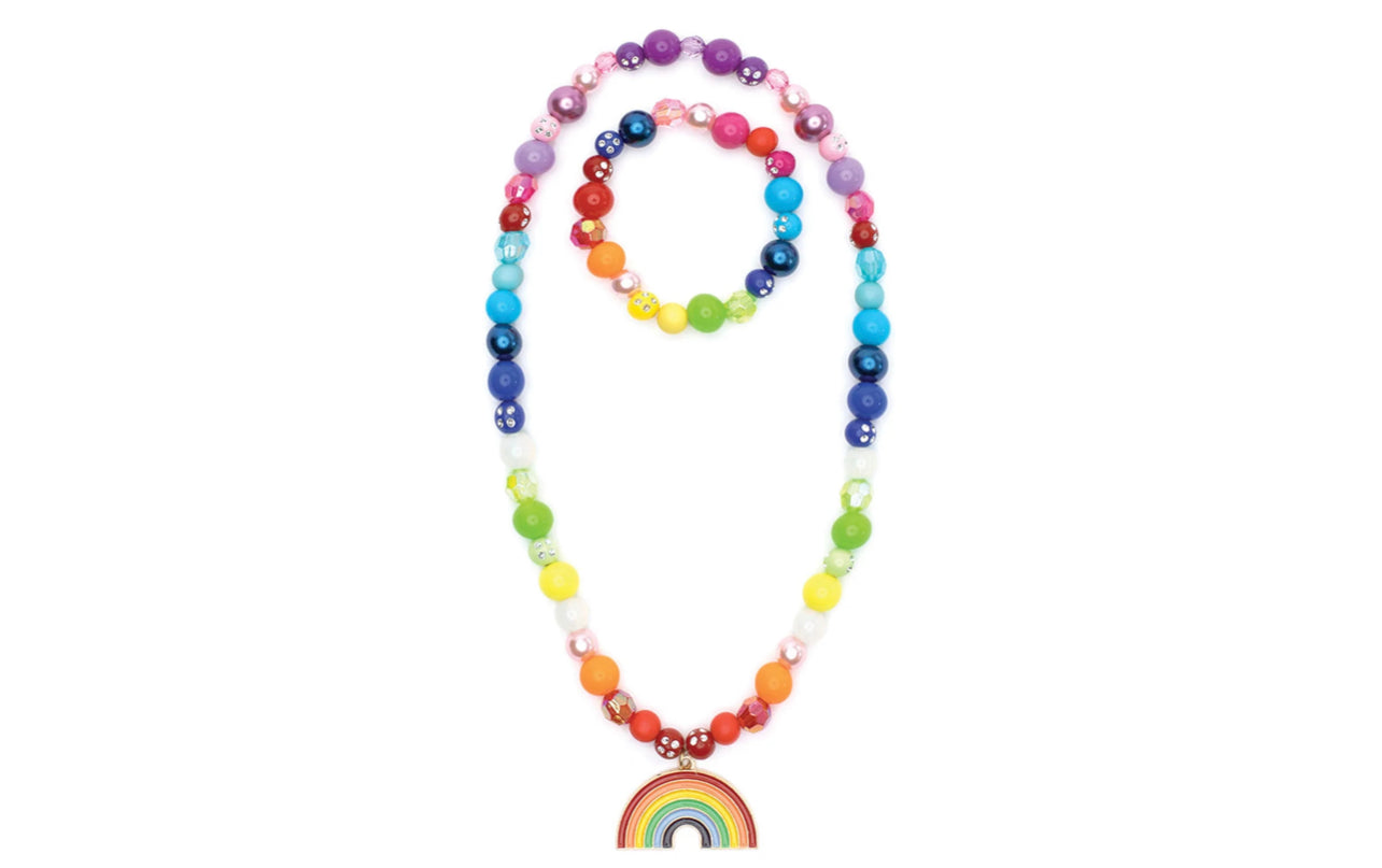 Somewhere over the rainbow… This multicoloured beaded necklace and bracelet set features a rainbow pendant. Style this piece with any outfit - happiness comes from feeling your best within.