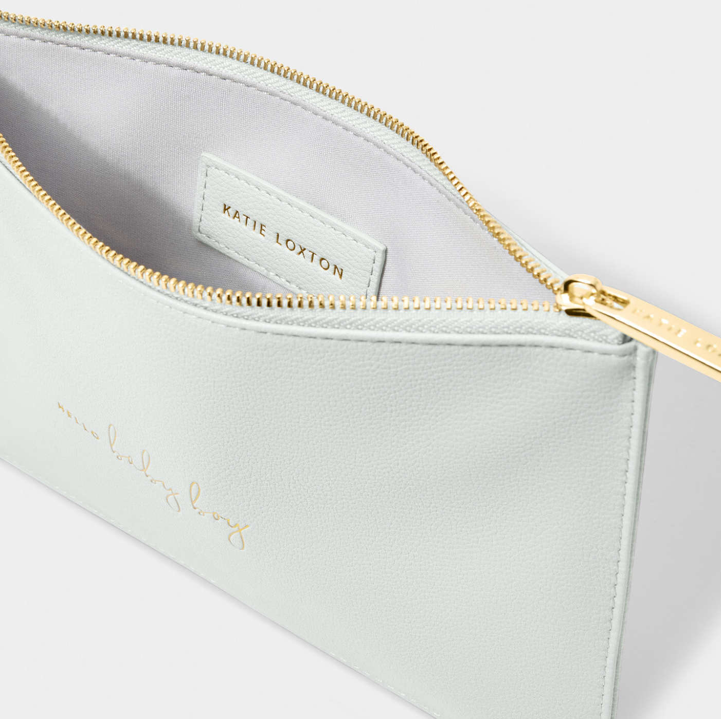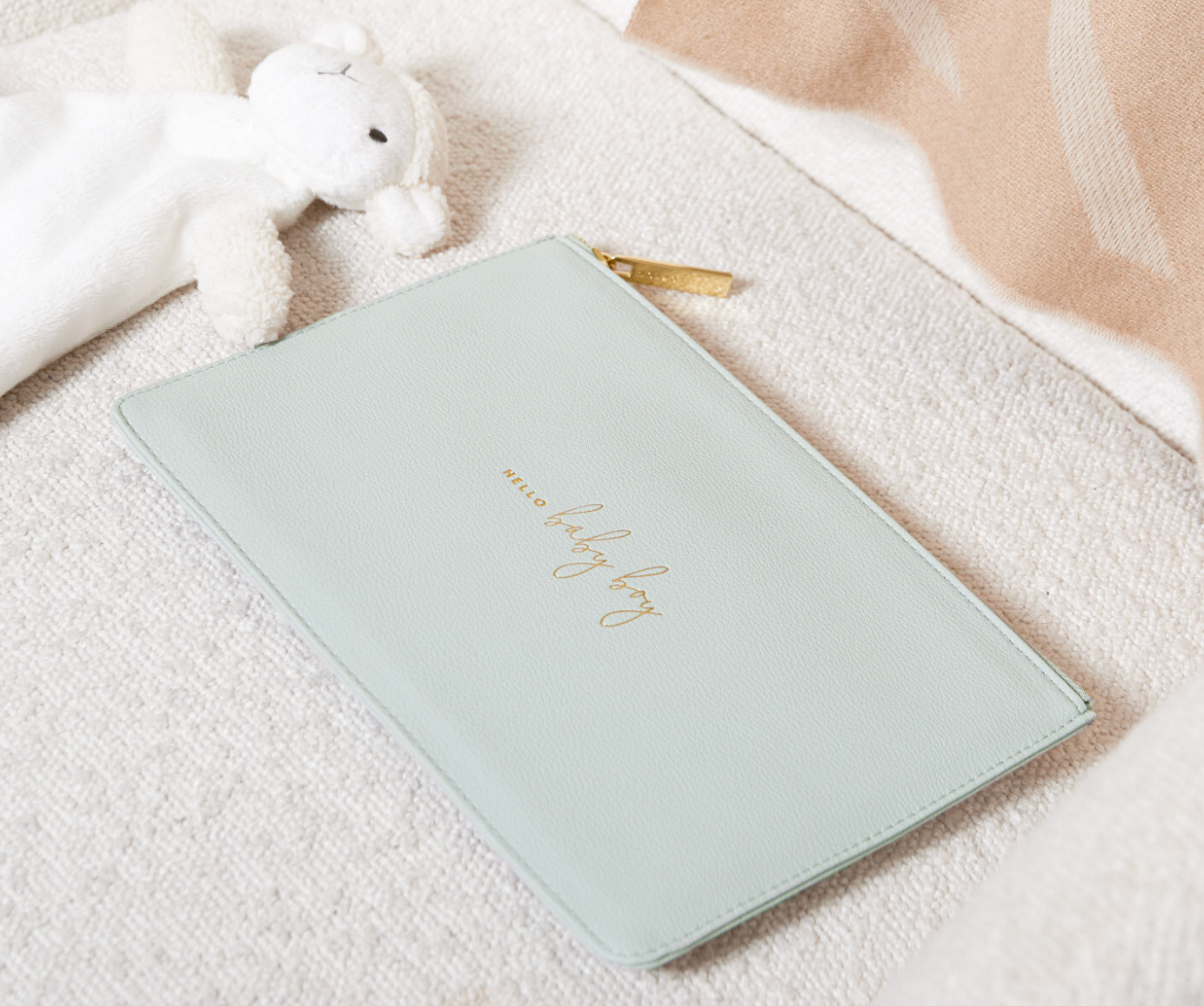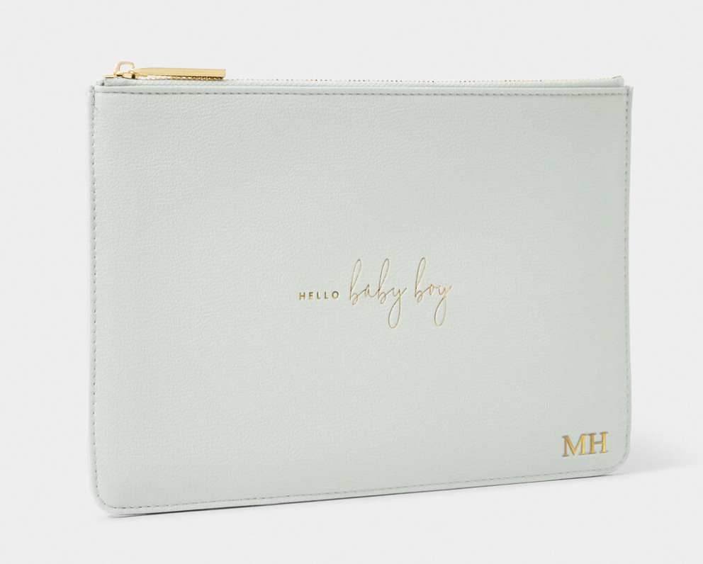 Whether you're gifting a soon-to-be mum or expecting a new arrival yourself, welcome the bundle of joy in the sweetest way with our Baby Perfect Pouch in cool grey. Perfect to stash all the smaller baby essentials in, this gorgeous pouch features a soft vegan leather design, gold-tone hardware and 'Hello Baby Boy' stamped to the front.