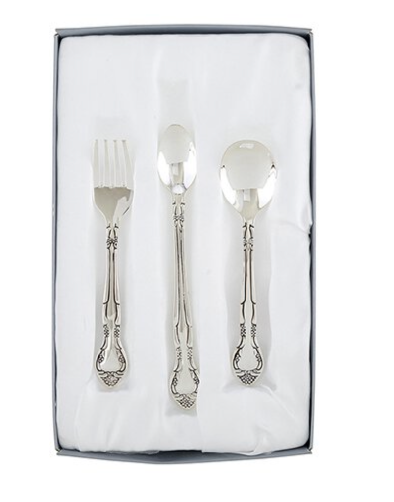Precious baby's keepsake. Silver-plated zinc alloy silver feeding set that includes: