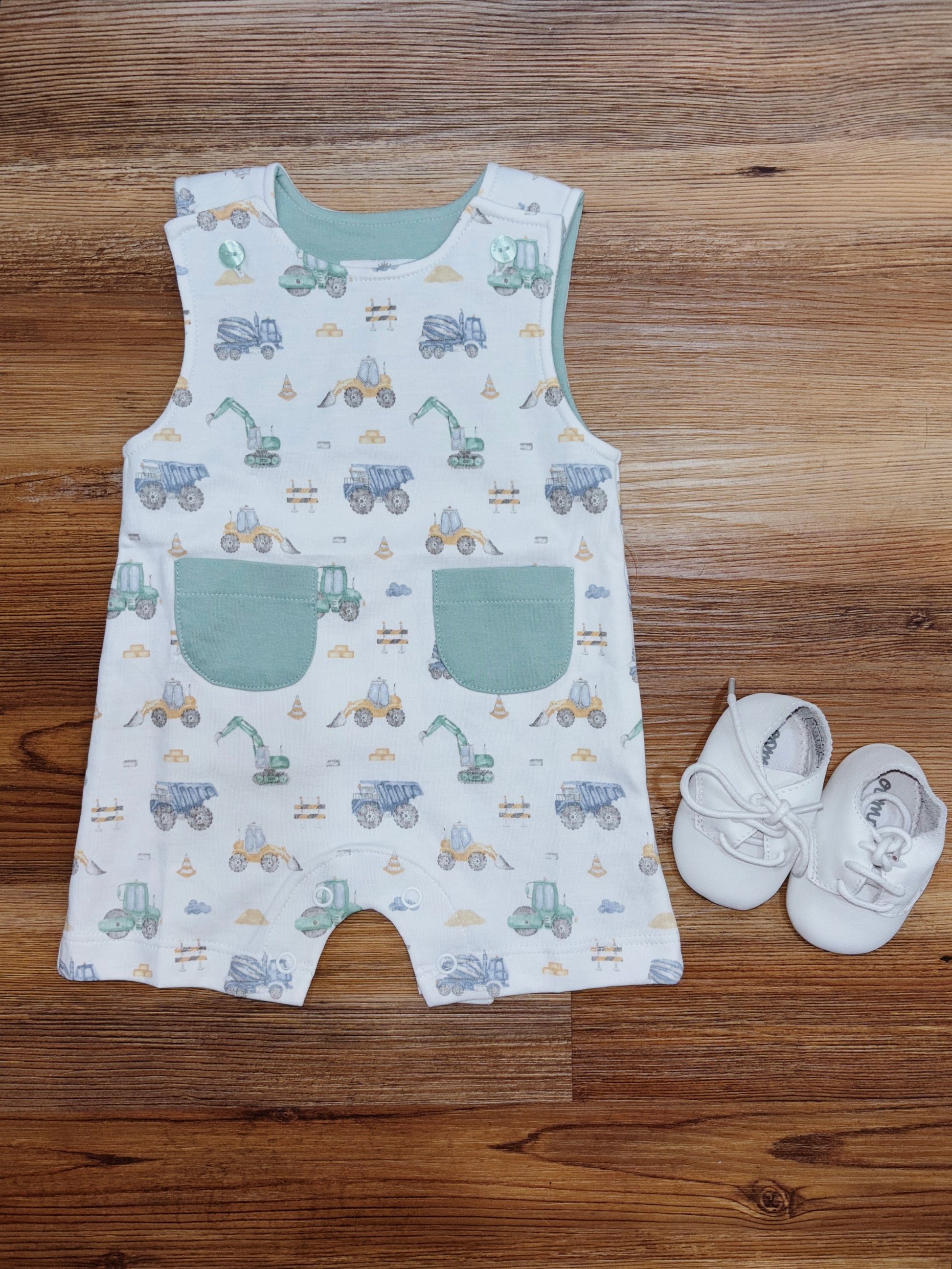 Introduce your little one to the world of construction with our Kidstruction Zone Pima Romper. Made from soft pima cotton, this sleeveless romper features a fun construction design and two pockets on the front for storing small toys. With buttons in the crotch for easy changing, it's both functional and stylish for your mini builder.