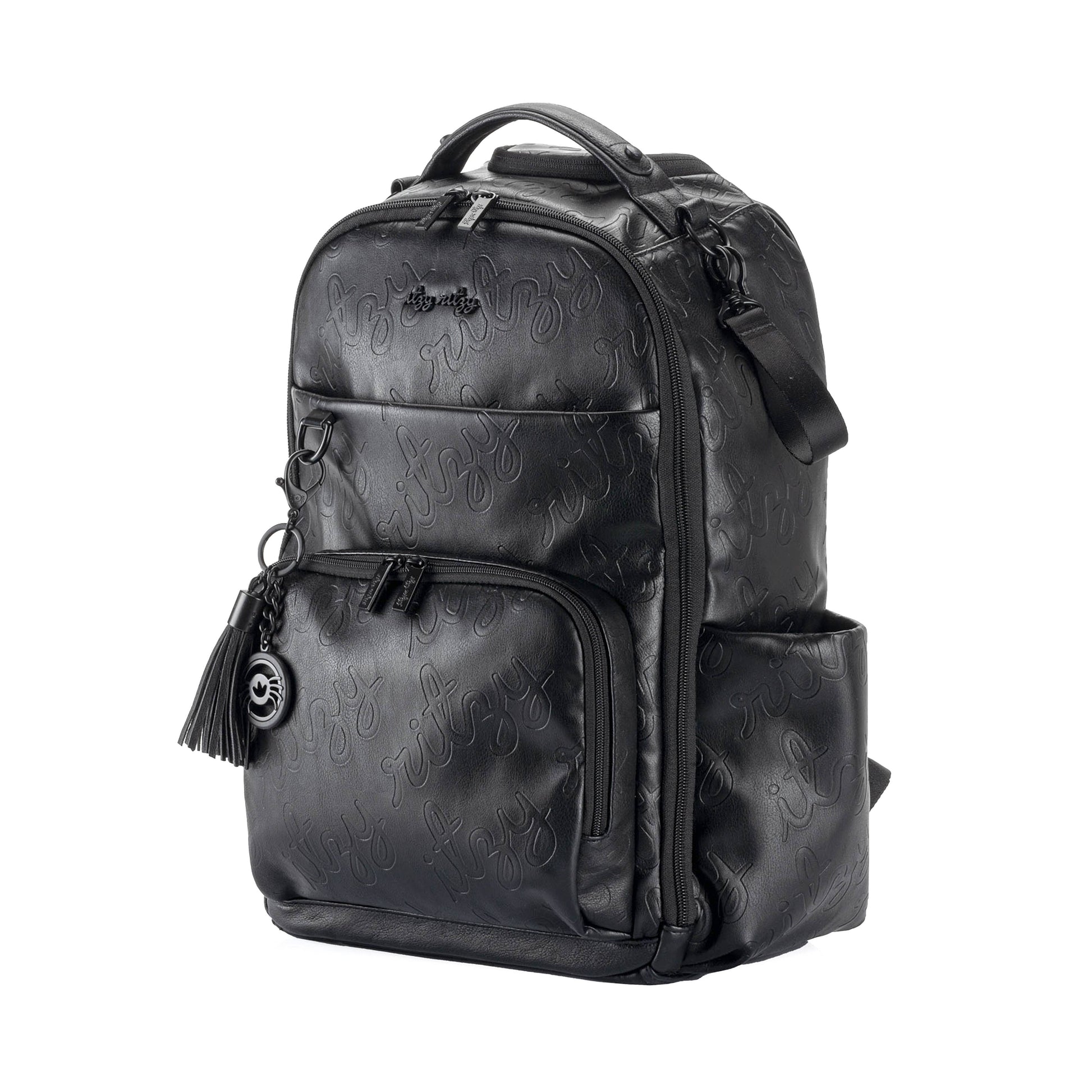 INSTANTLY ICONIC: MEET THE LIMITED EDITION ICON BOSS PLUS™ Your forever bag for baby & beyond, every (little) step along the way! Our Limited Edition Icon Boss Plus™ Backpack gives you all your favorite Boss Plus features + new specialty touches, like the debossed Itzy Ritzy signature repeat exterior design, new & sleek fold-over style on side pockets, a limited edition spider logo charm and monochrome black exterior & hardware pairing! Bonus! With even more pockets – 19 total! – this is our most organized large capacity bag yet, and includes must-have features like insulated side bottle pockets, comfy shoulder straps, a roomy main compartment, felt line valuables pocket and our signature rubber bottom feet and top-to-bottom zippers for total functionality and durability.