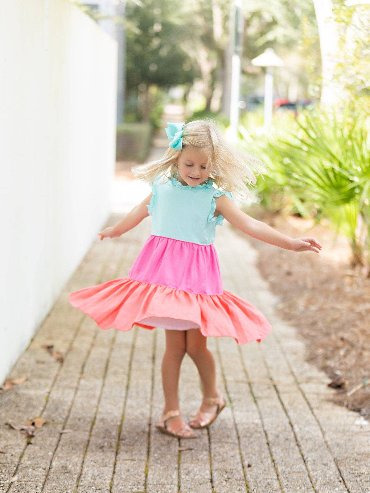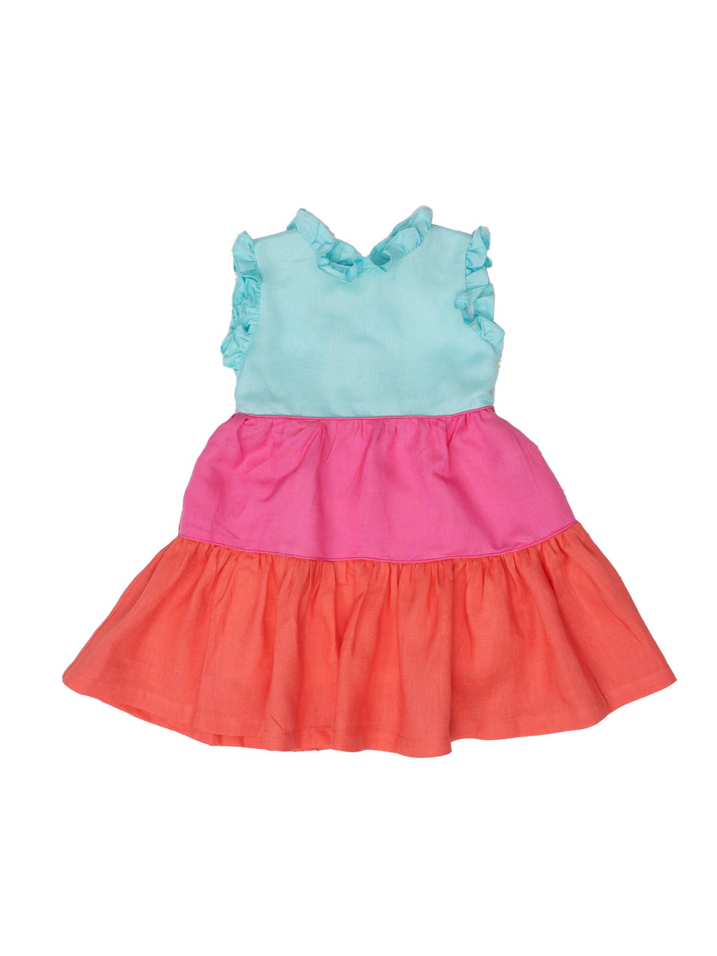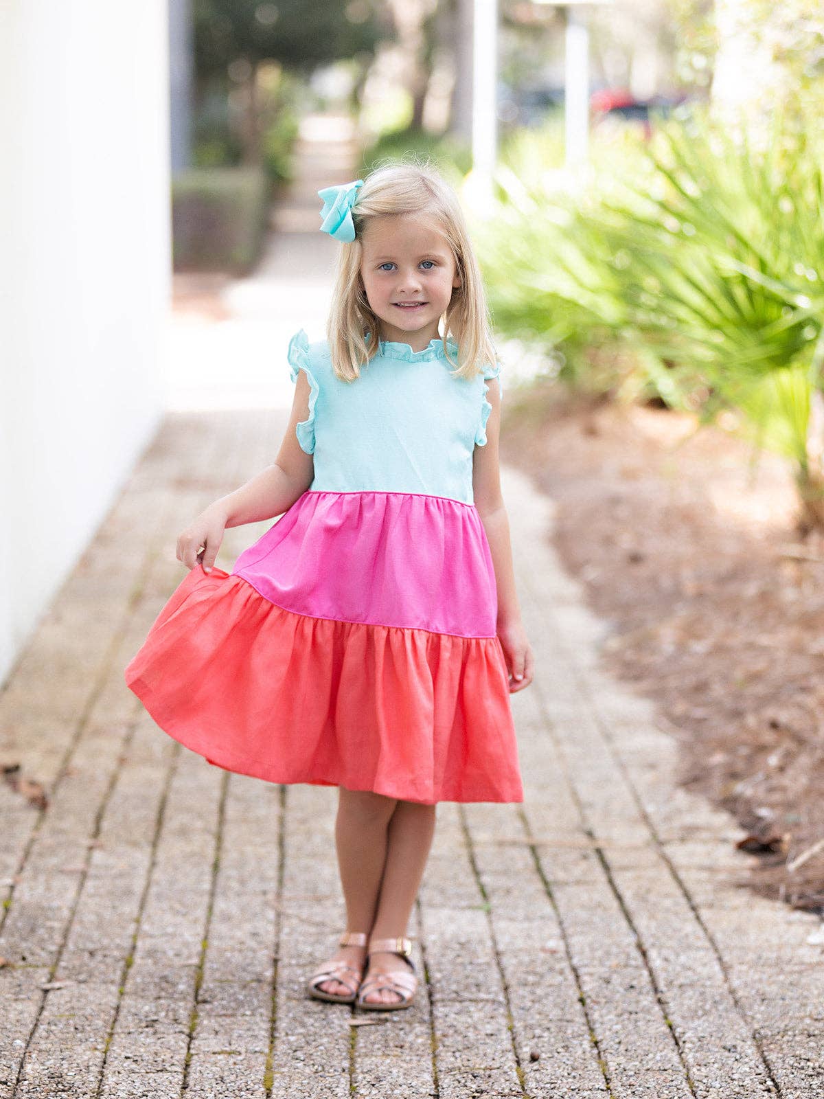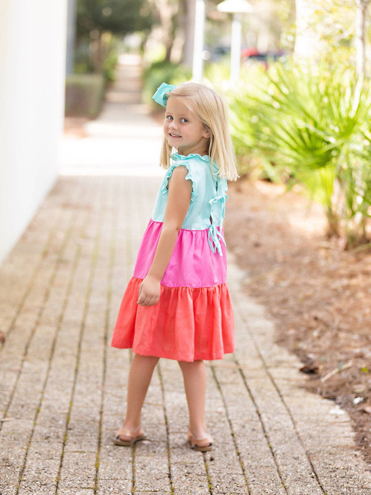 Our Linda Bright Topics Tiered Dress is a Mommy and Me dream! Matching Mom dress too. Our linen dress is fully lined and washes so well. It is the perfect weight of fine linen that gets better with age. We recommend washing on delicate cycle, hang to dry.
