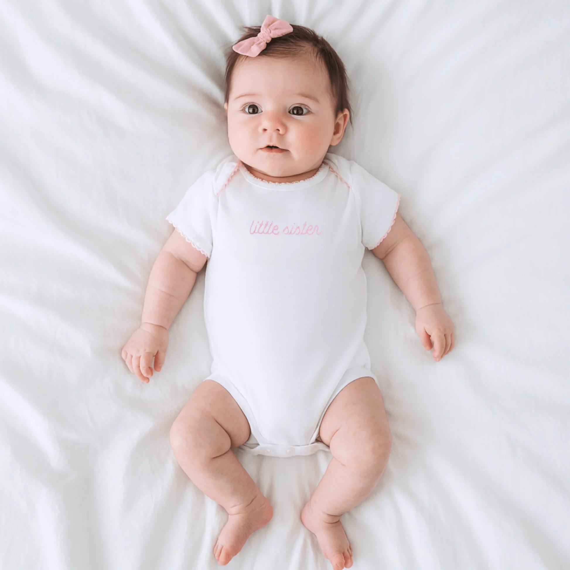 - Embroidered "Little Sister" Pink: A sweet, personalized detail.