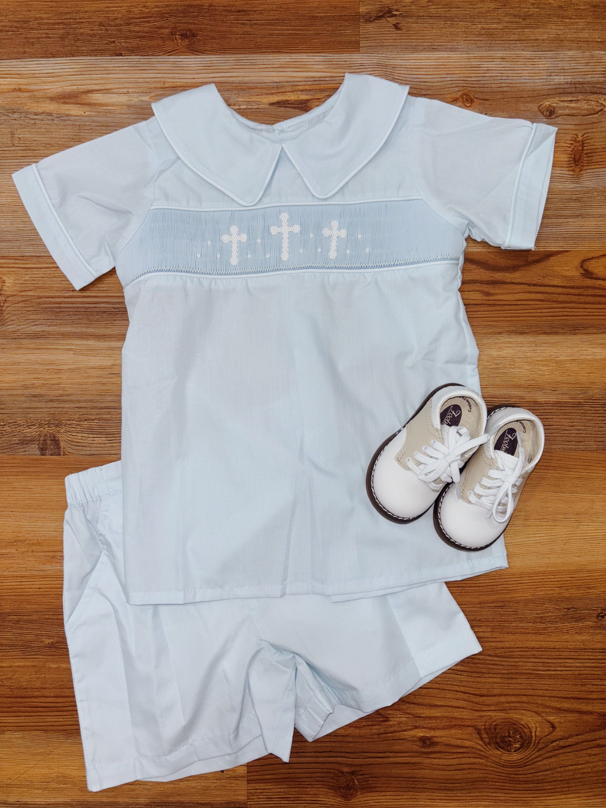 The Madison Cross Short Set is a stylish and comfortable option for any warm weather occasion. Made with quality materials and a cross design, this set offers both durability and a fashionable look. Perfect for casual events or lounging at home, this set is a must-have for any wardrobe.style #RN-SS104