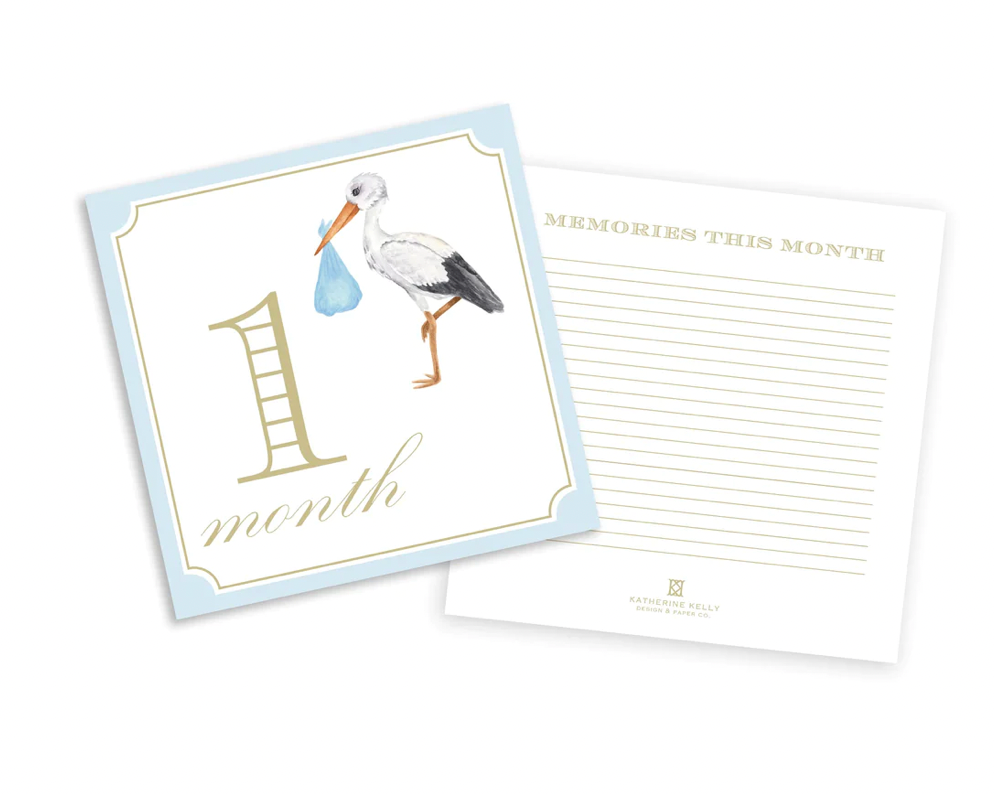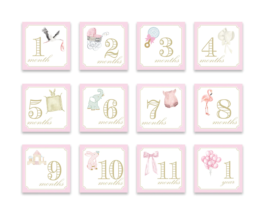 capture adorable monthly photos of your little one with these classic milestone cards or just use them as keepsakes! the front of each card features an illustration and the featured month, while the back contains a space to jot down milestones or memories from each month.
