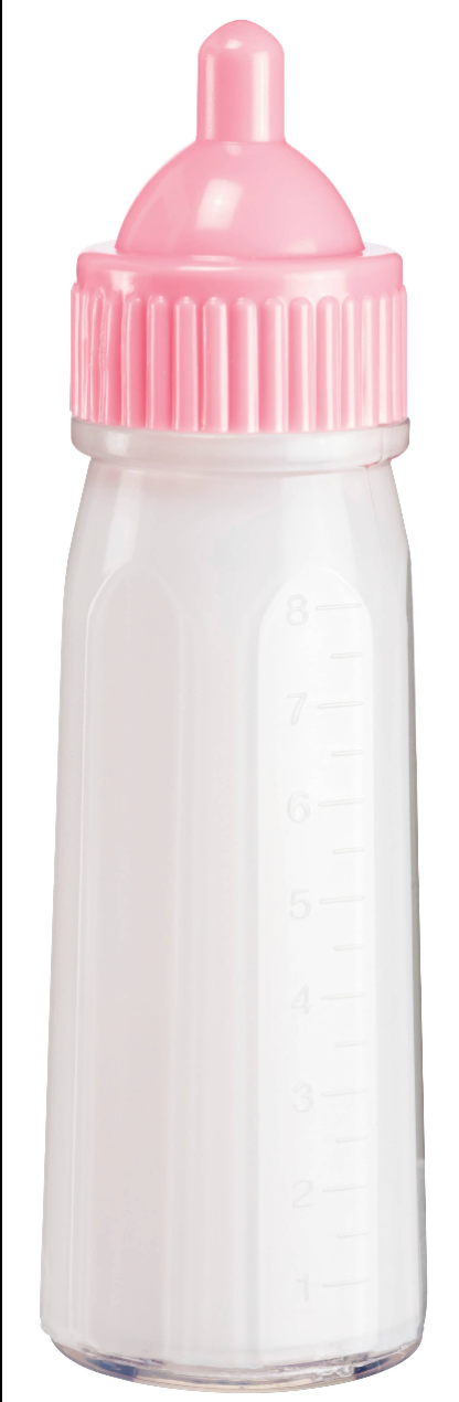 Magic Baby Bottle toys from My Sweet Baby includes 2 drink styles with colorful liquid that disappears when tilted for feeding baby. Bottles refill when bottle is stood straight again. Liquid looks like milk or orange juice. Milk bottle is 4.75 inches tall. Orange juice bottle is 4 inches tall. Made with high-quality, nontoxic plastic and featuring lifelike designs and mL markings.