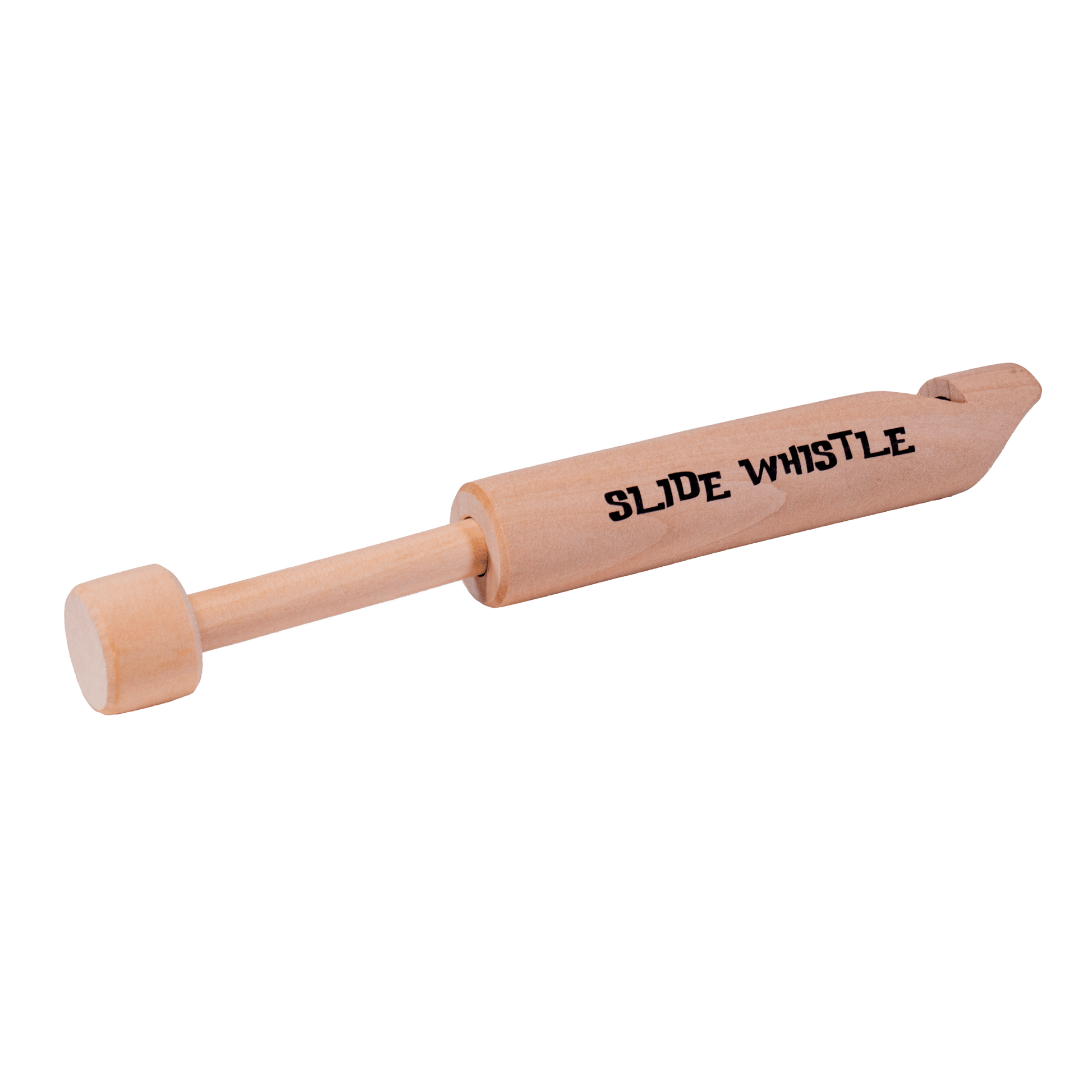 A classic wooden musical instrument that kids 3+ can’t get enough of. This popular Wooden Slide Whistle measures 6.5 inches long. Made of no-splinter natural wood, this musical noisemaker is easy and safe to use. No batteries or assembly required. Each slide whistle has a solid wood make and smooth surface and is completely round with an opening for the mouthpiece. This fun, musical toy is easy to hold and play songs, imitate birds, and make funny sounds.