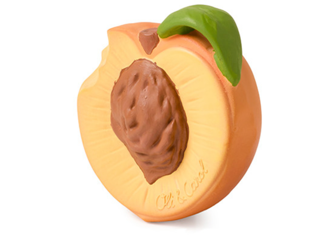 Feeling peachy? Meet Palm Peach, a natural rubber teether and bath toy. Its realistic textures help stimulate babies’ senses and relieve teething gums, making it ideal for sensory play. Introduce kids into a healthy lifestyle with this fruit teether!