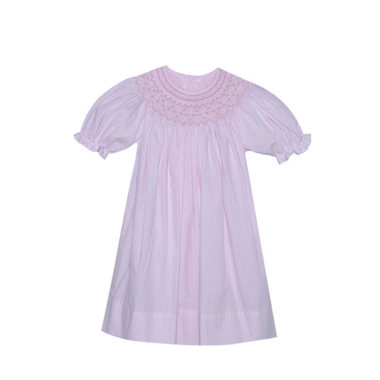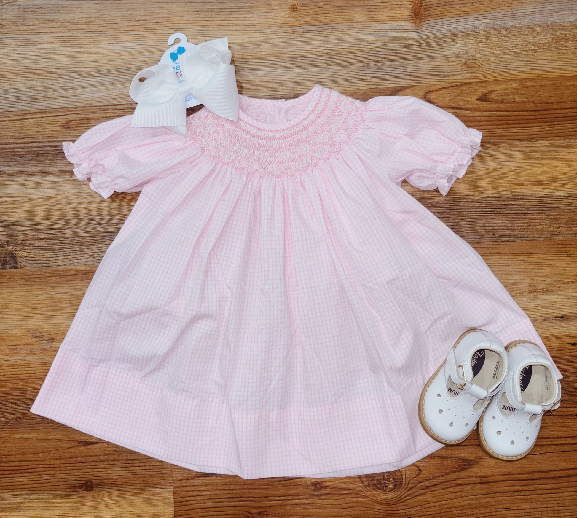 This Pink Savannah Smocked Bishop Dress is crafted with a beautiful pink smocked design. Made with high-quality materials, this dress offers superior comfort and style. The intricate smocked details add a touch of elegance, making it the perfect choice for any occasion. Add this timeless piece to your wardrobe today. style #RN-BD100
