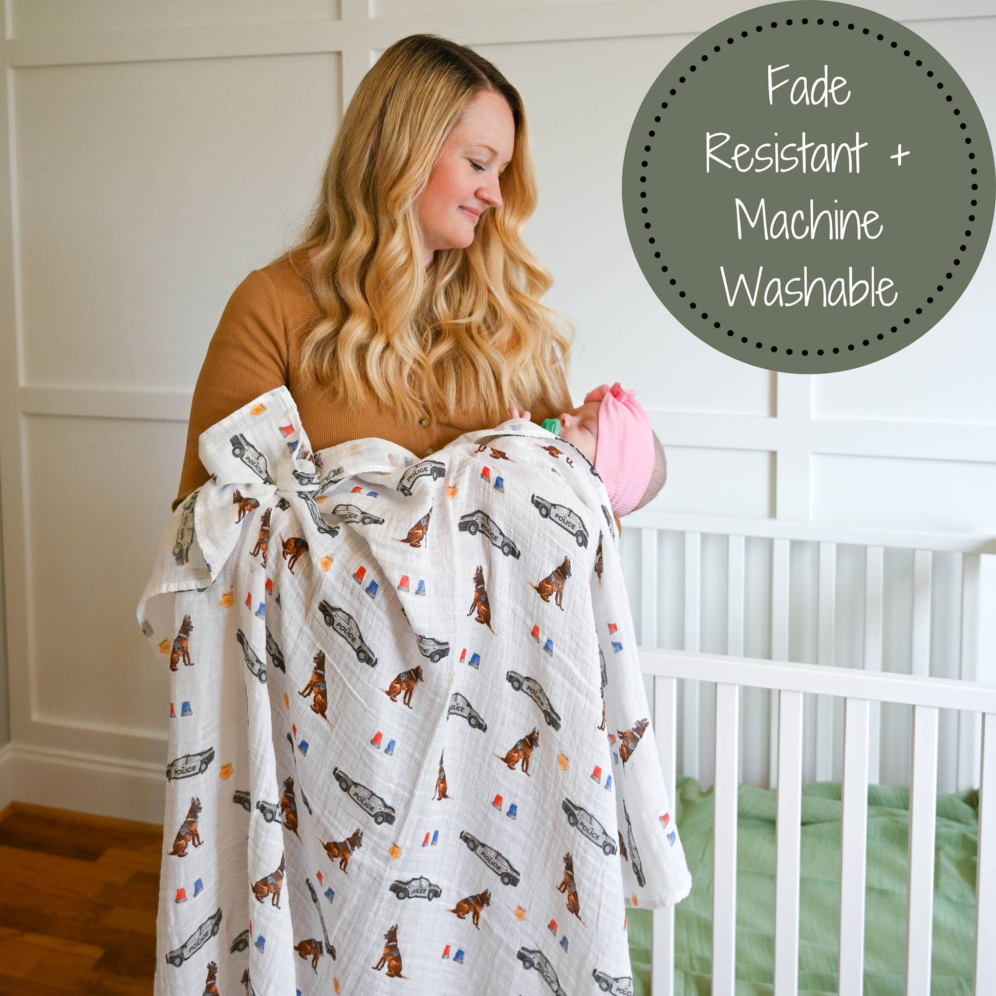 - SOFT AND COZY SWADDLING BLANKET - Wrap your little loves in LollyBanks extra soft 100% cotton muslin swaddles to make your baby feel safe and secure. Each 47x47 blanket provides enough space to snuggly and securely wrap your newborn as well as provide comfort through the toddler years. POLICE THEMED SWADDLE - This police dog print is perfect for keeping in the nursery or using as a stroller cover for your baby. Moms and dads will love receiving these as a baby shower gift or welcome present. * BREATHABLE AND LIGHTWEIGHT - This swaddle is made from high-quality 100% cotton muslin fabric giving you peace of mind knowing that you are wrapping your baby in a breathable yet durable blanket that will stand the test of time and will save as a keepsake for years to come!