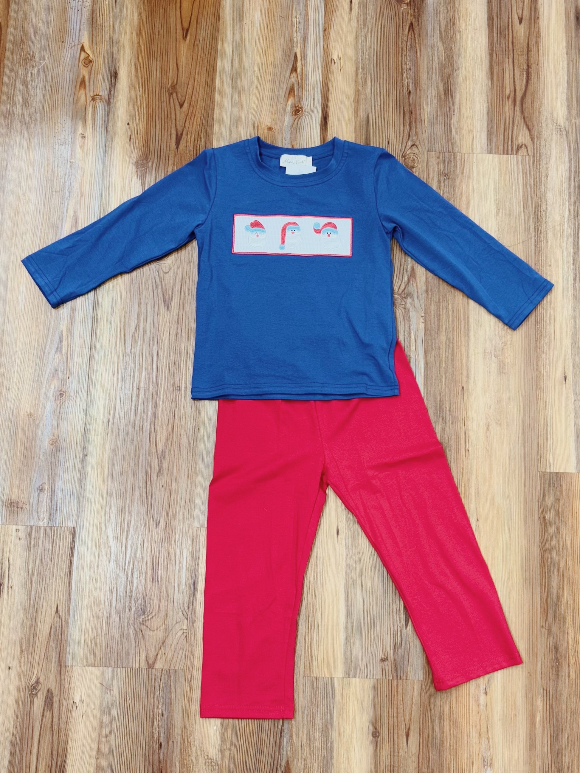 The Santa Parade Smocked Outfit features a long sleeve top with festive embroidery across the chest and a pair of soft, comfortable pants for easy movement. Crafted for playful seasonal gatherings, this set brings cheerful holiday spirit and a touch of whimsy to any celebration. * Fits true to size. * Top: 97% Cotton / 3% Spandex * Combo: 100% Polyester * Bottoms: 97% Cotton / 3% Spandex