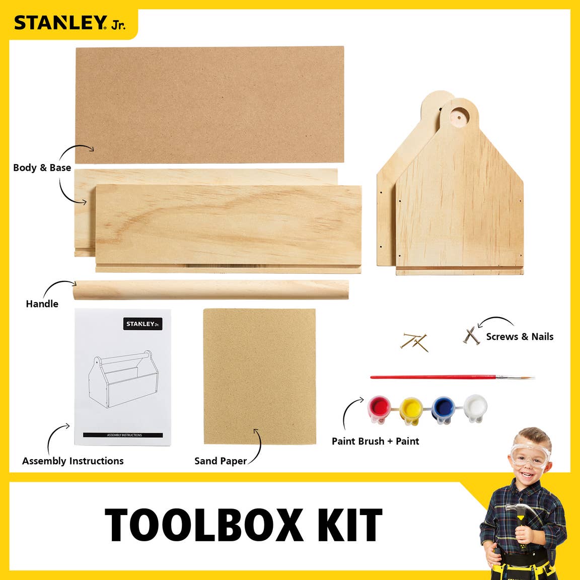 Large Wood Building Kits 5+. Kit includes pre-cut wood pieces and all screws and nails required to assemble model Build and customize your toolbox with the included paints A great project for parents and kids to work on together!