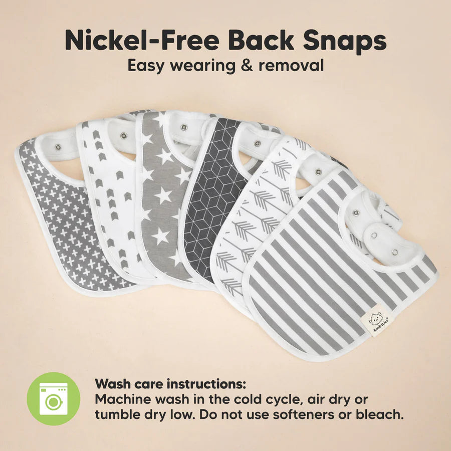 - 8-Pack modern and stylish bibs.